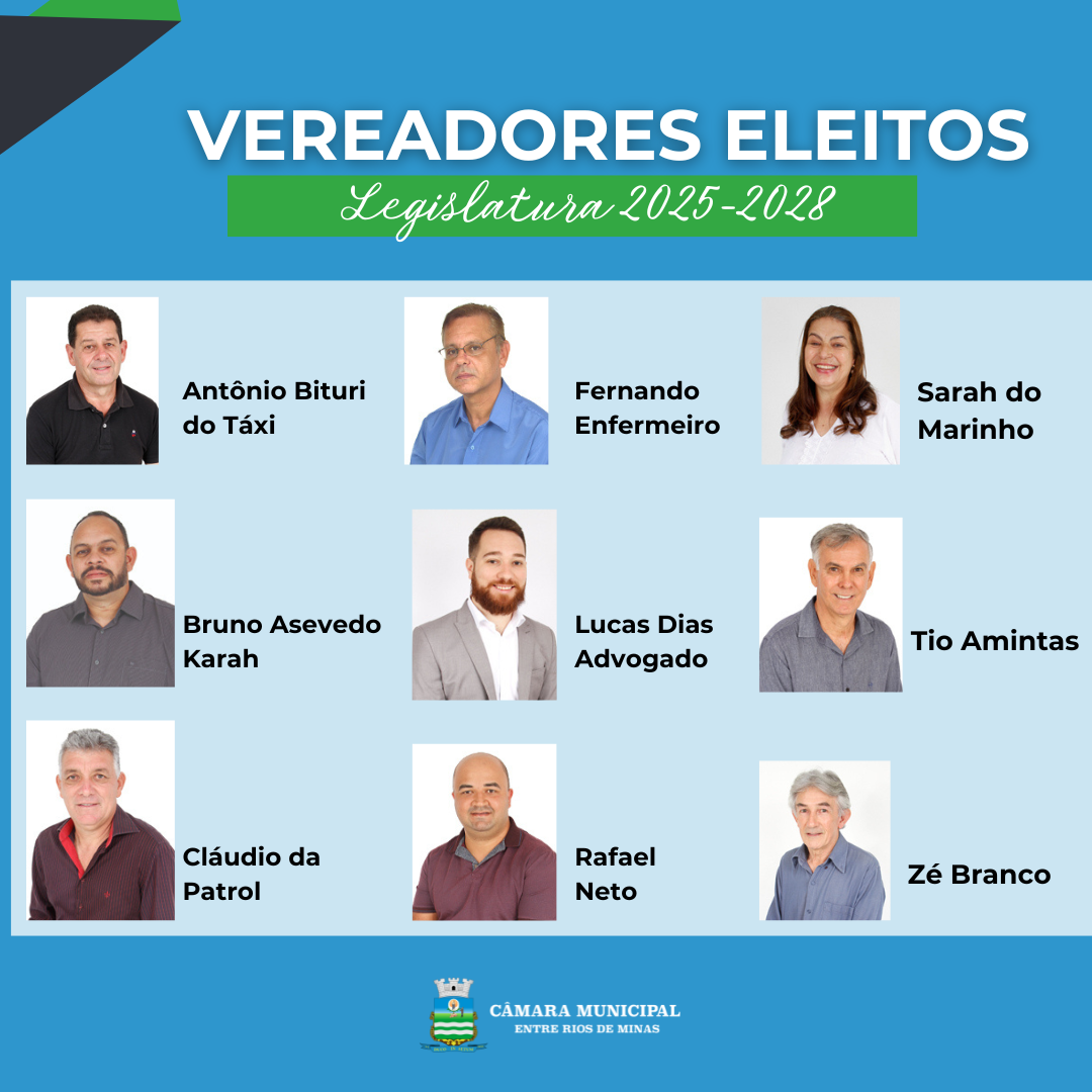 Vereadores eleitos tomam posse em 1º de janeiro de 2025